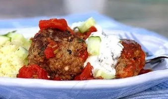 Meat rolls with cheese and herbs in sour cream and garlic sauce